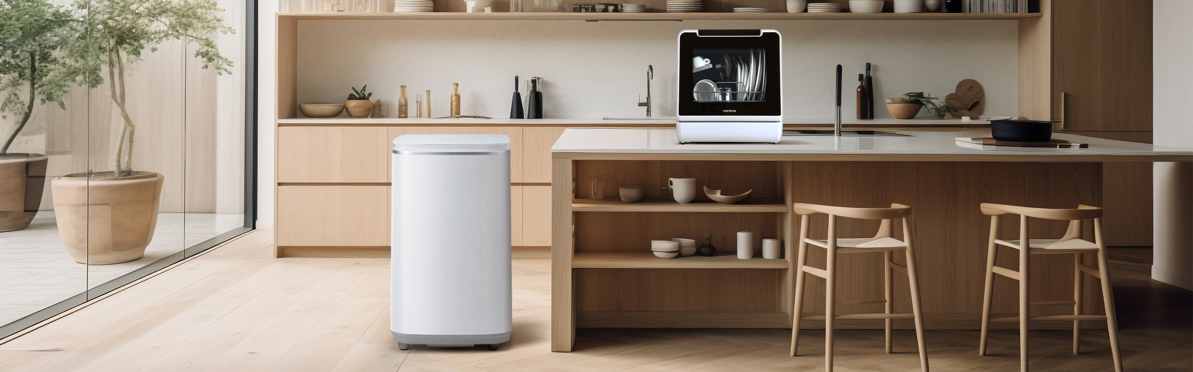 Ce lave-vaisselle se marie bien avec tout. Vous le posez dans un coin, super pour une, deux ou trois personnes. C'est un appareil nomade, c'est ça qui est bien. Vous pouvez le mettre où vous voulez sans vous prendre la tête et rajouter de l'eau. C'est cool, impeccable.