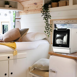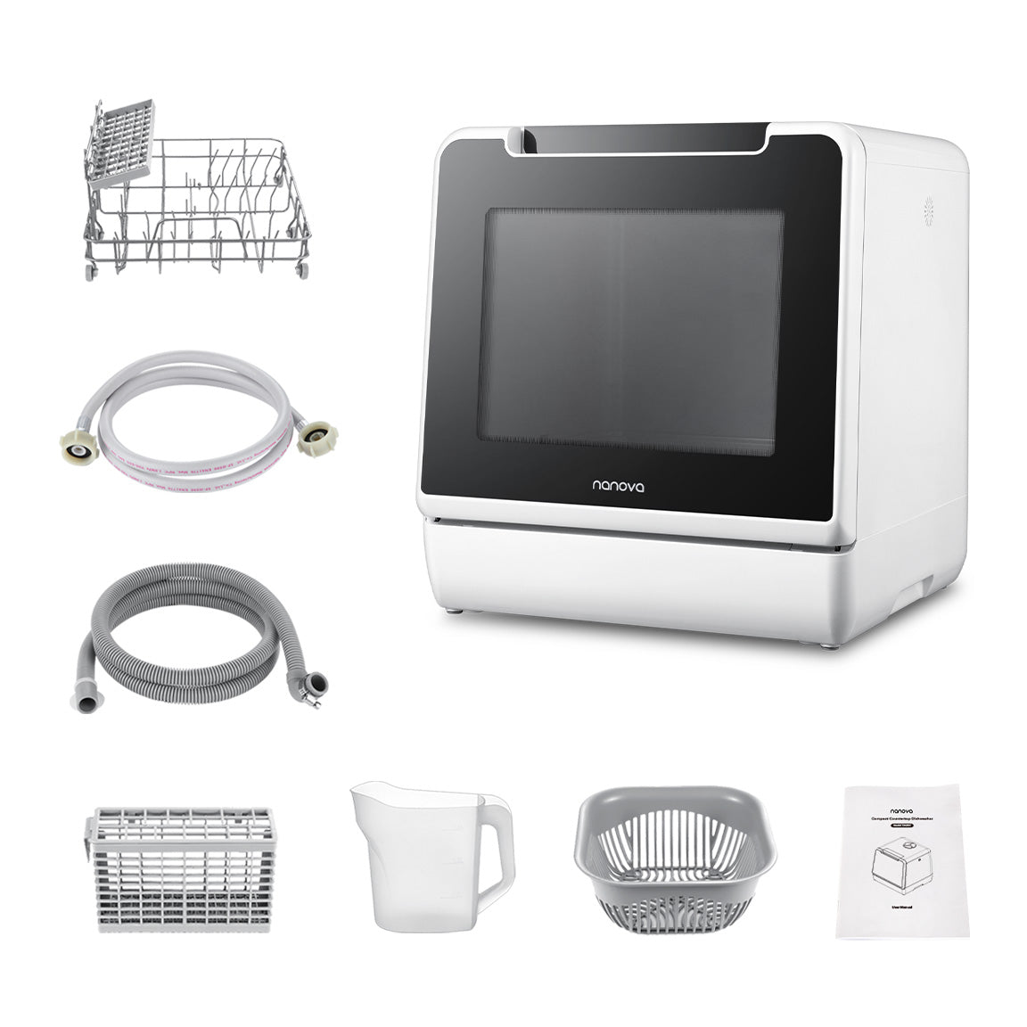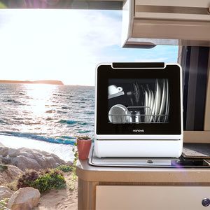 Le lave-vaisselle portable NANOVA D1 permet de réduire la consommation d'eau jusqu'à 80 %, ne nécessitant que 5 litres (1,3 gallons) par cycle de lavage. Avec une capacité de 2 couverts, il est parfaitement adapté aux personnes seules et aux petites familles. Ce lave-vaisselle compact de comptoir est équipé d'un réservoir intégré pour l'alimentation en eau, ce qui vous permet de le placer n'importe où sans avoir besoin de le connecter à l'eau du robinet. Choisissez parmi 7 cycles de lavage avec séchage automatique à l'air et ventilation pour garder votre vaisselle propre et bien rangée.