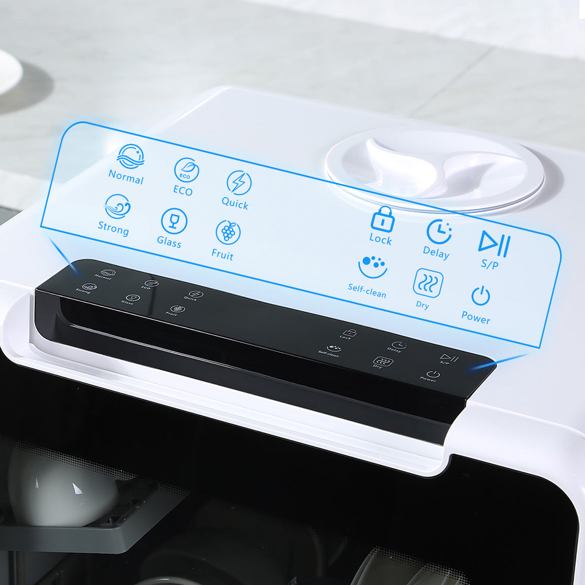 Les cycles de lavage Normal, Quick, Strong, Fruit, ECO, Glass and Self-Clean du lave-vaisselle portable D1 répondent à tous vos besoins de nettoyage. Le séchage à l'air chaud à 40 °C (104 °F) après chaque lavage et la ventilation optionnelle de 72 heures permettent de garder votre vaisselle sans odeur.