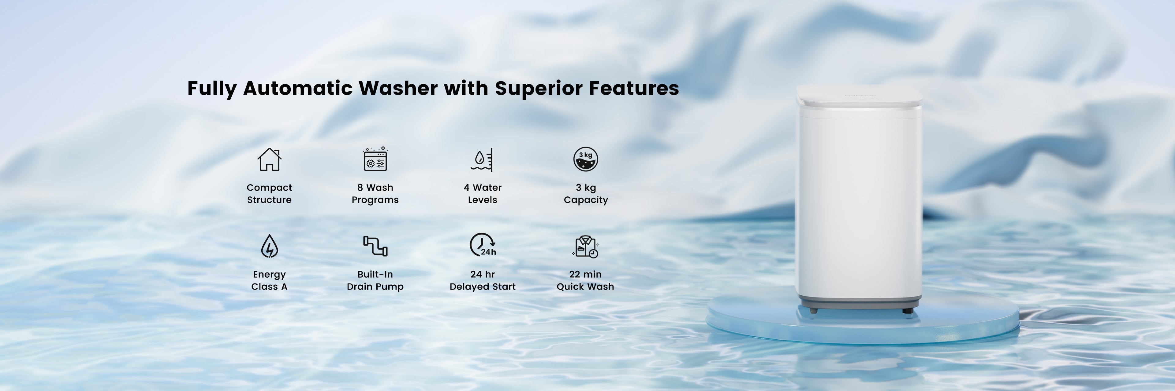 With a dimension of only 42 x 45.5 x 75 cm, this washing machine is perfect for dorms, apartments and other limited spaces. Its stainless steel tub easily handles 3 kg of laundry, meeting the daily laundry needs of single dwellers or smaller families.